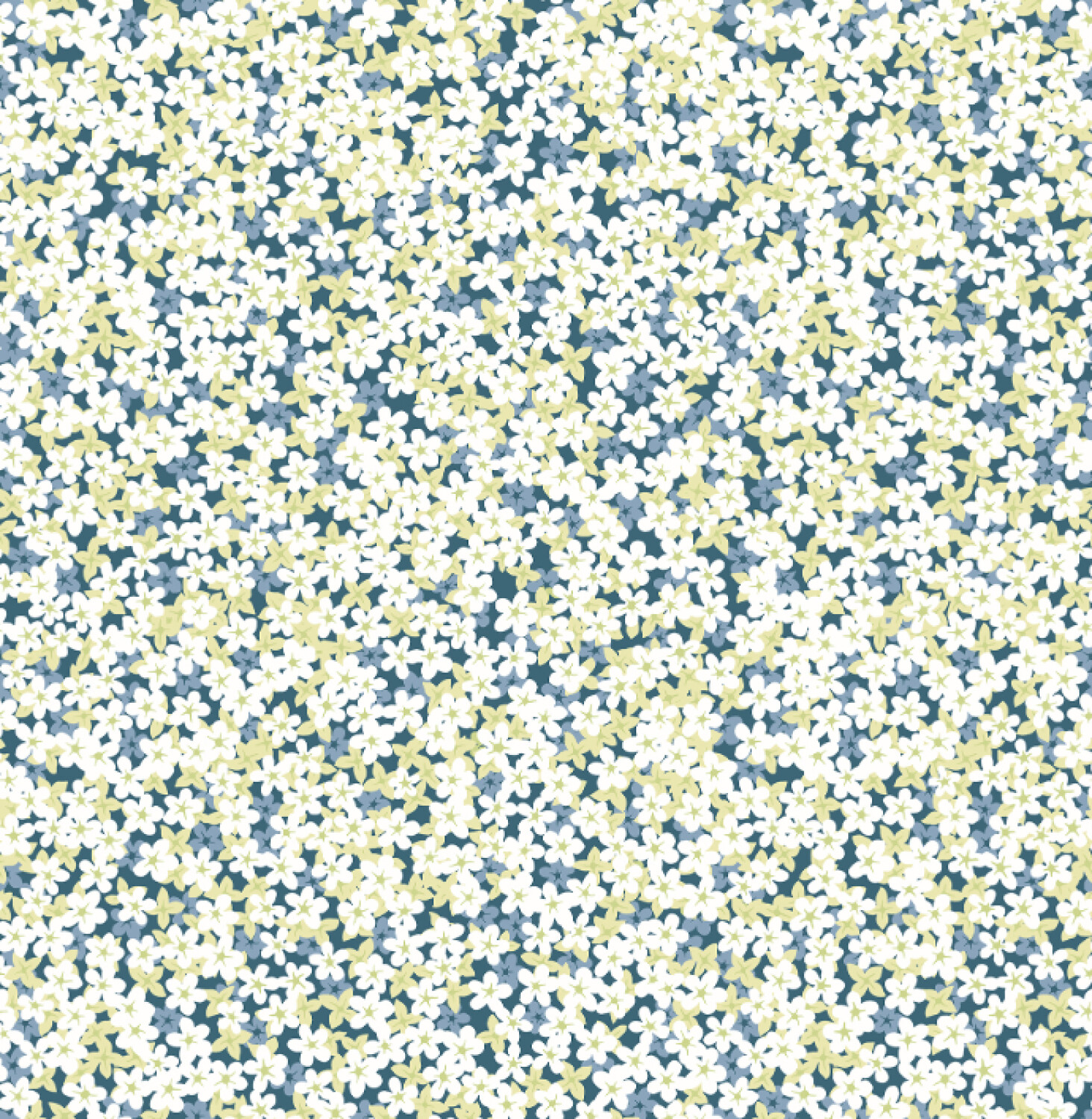 Invite a la belleza de la naturaleza a su decoración con este deslumbrante papel tapiz floral en miniatura. Las flores blancas, celestes y amarillas aparecen sobre un fondo azul marino. Giverny es un papel pintado sin pegar y sin tejer. - Material no tejido - Partido recto - Lavable - Instalación Pegar la pared - Medidas: 52 cm de ancho x 10 mts de largo * Sin cambio ni devolución