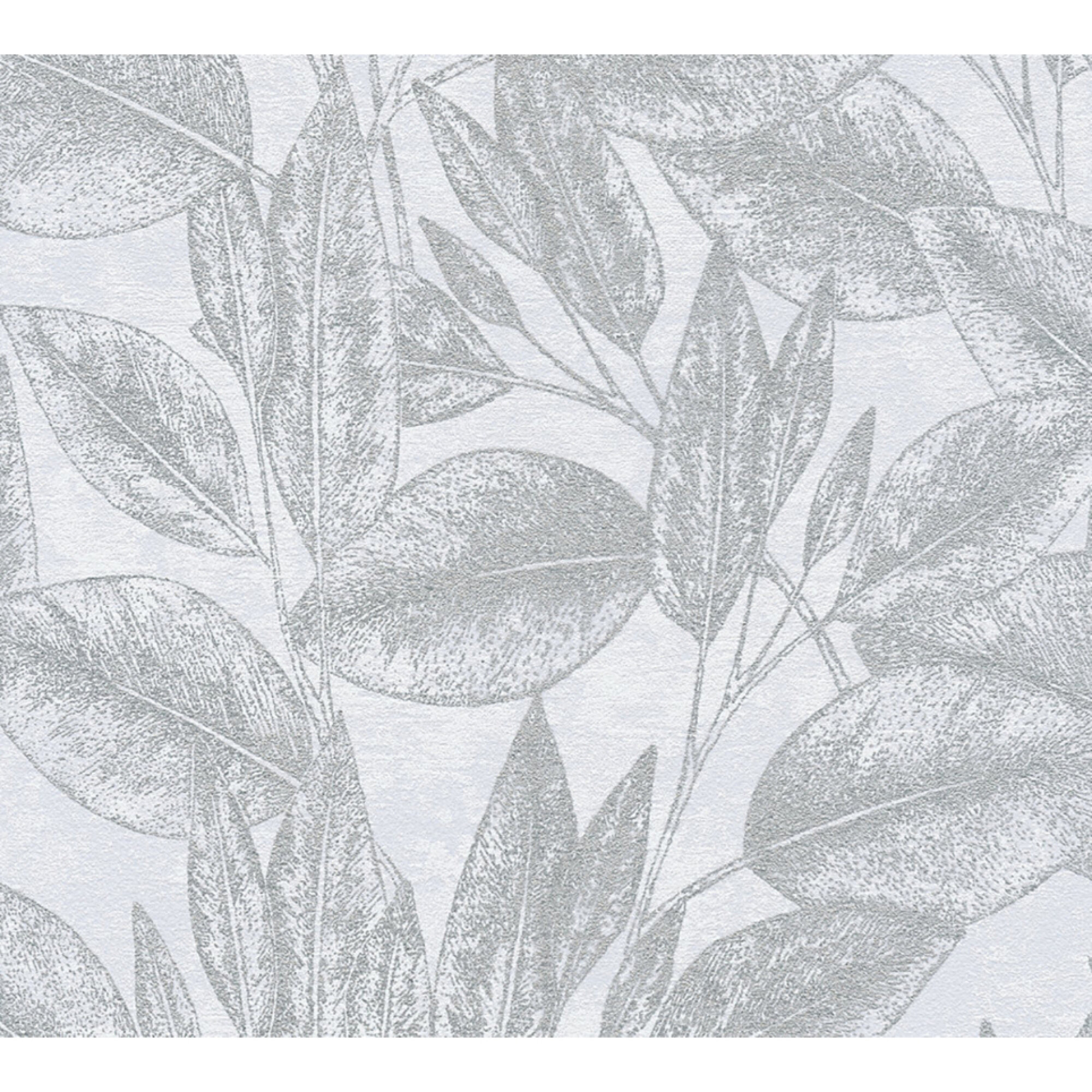fruta de un toque de glamour con este atractivo diseño de hojas. Un fondo blanco envejecido destaca las hermosas hojas tropicales a gran escala entintadas en la parte superior con un deslumbrante acabado plateado metálico. Suki es un papel pintado de vinilo sobre tejido no tejido sin pegar. - Material no tejido - Partido recto - Lavable - Instalación Pegar la pared - Medidas: 52 cm de ancho x 10 mts de largo * Sin cambio ni devolución