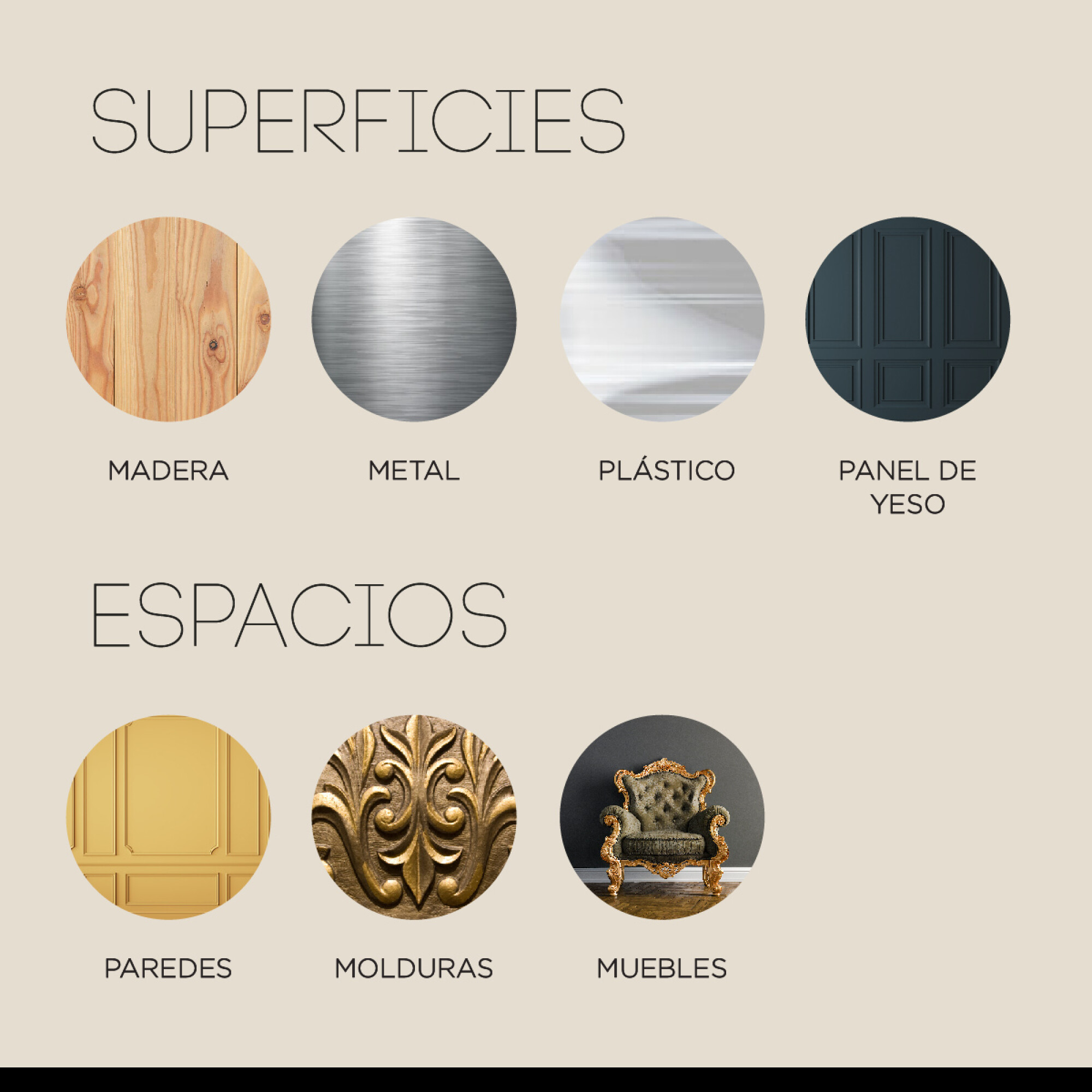 Las Pinturas Metálicas Satinadas de la línea Modern Masters® son base agua y de secado rápido. Las pinturas de esta colección combinan mica y pigmentos tradicionales para crear la paleta de nueve colores satinados, que son inalterables, no se decoloran y están disponibles por primera vez en pintura base agua. Son ideales para hotelería, locales comerciales, uso residencial, oficinas corporativas, casinos y parques temáticos. Se pueden aplicar en superficies de madera, metal, plástico y paneles de yeso. Base agua Perfecta para pintar muebles y paredes Uso interior (para superficies de exterior utilizar el protector Modern Masters) Fácil aplicación Secado rápido