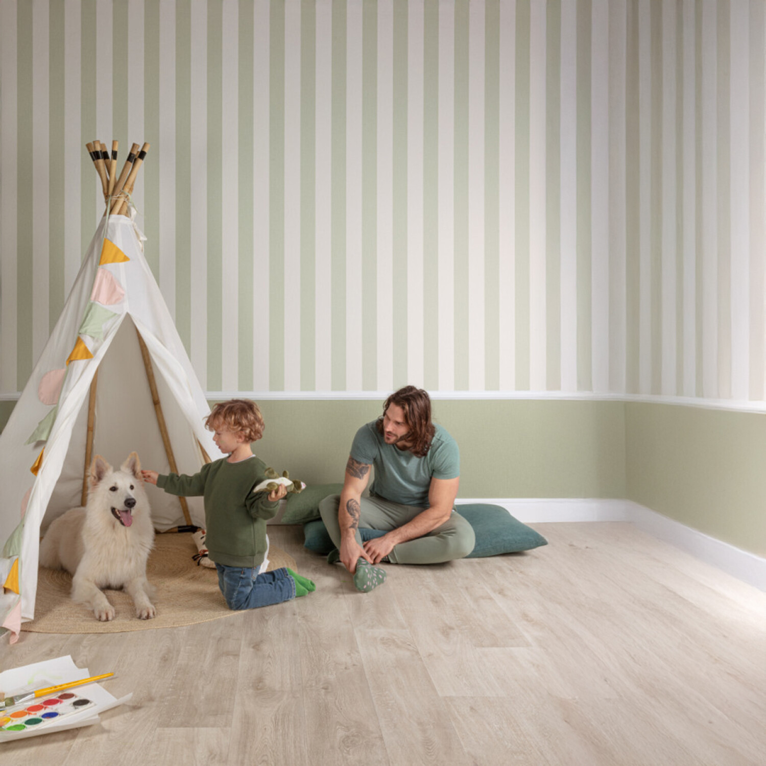 Con Atmosphere, GrandecoBoutique combina lo mejor de dos mundos. Gracias a la innovadora tecnología NobacoatŽ, esta moderna colección de papel pintado cuenta con un acabado antivirus y antibacteriano. Elige entre una textura de lino lisa o un llamativo estampado de rayas en colores tenues y da rienda suelta a tu creatividad. ĄPara un interior impactante!