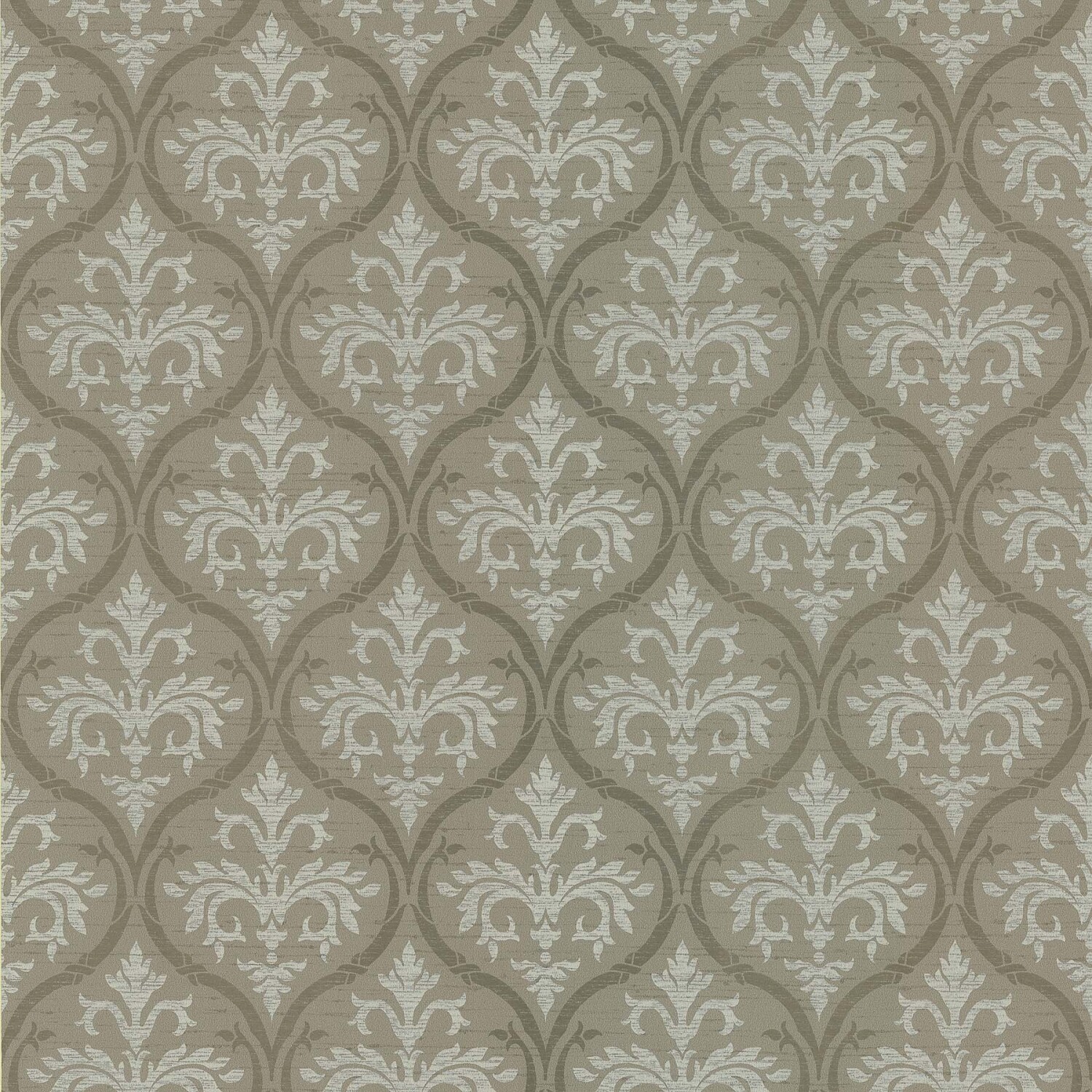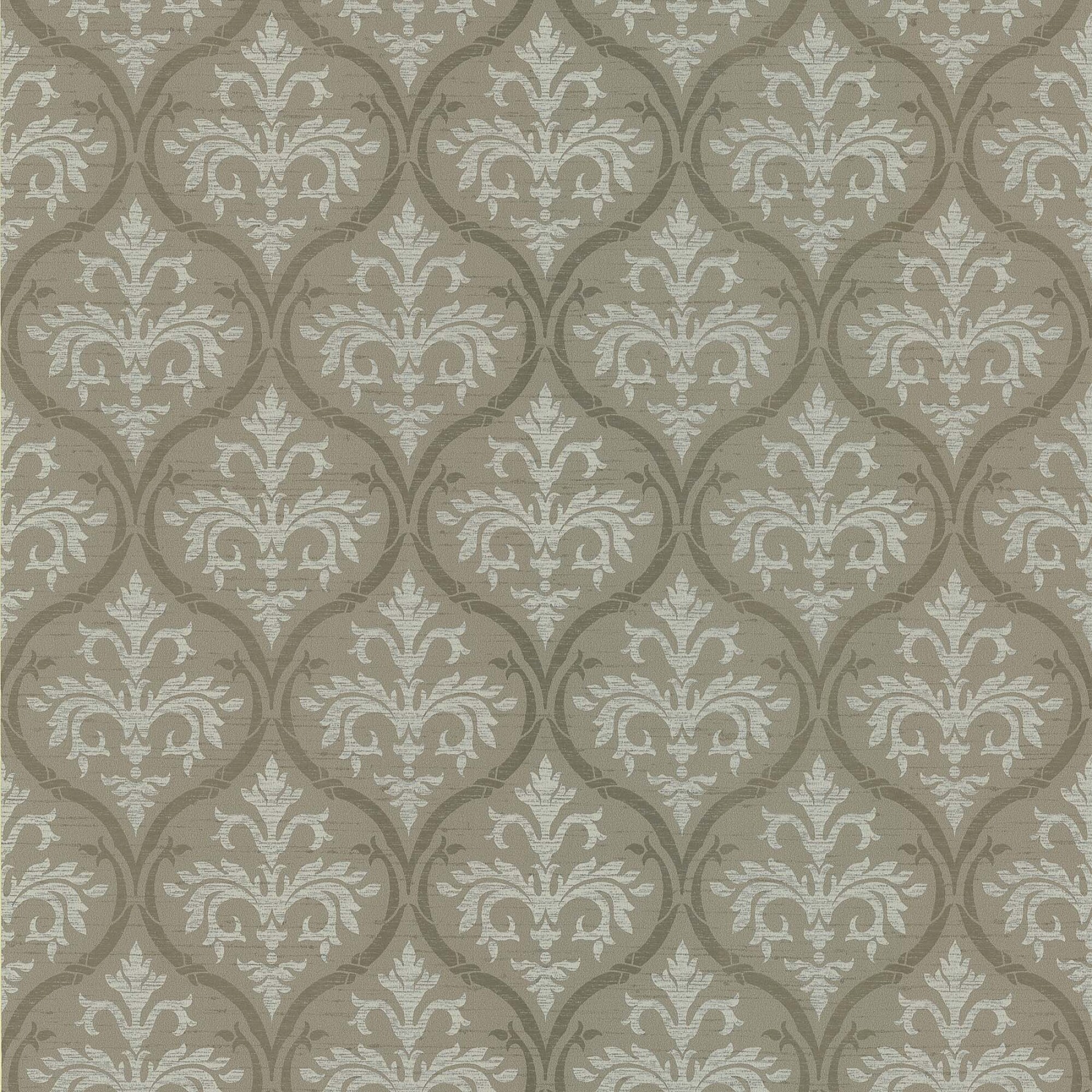 Intrigante elegancia distingue este empapelado verde-oliva con el modelo adamascado simplificado dentro de un herraje modelo perla. - tela no tejida - lavable - medidas: 52 cm de ancho x 10 mts de largo * Sin cambio ni devolución