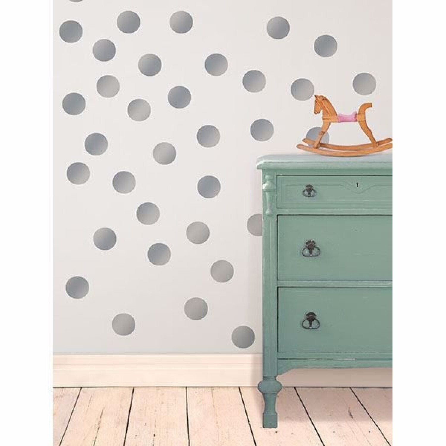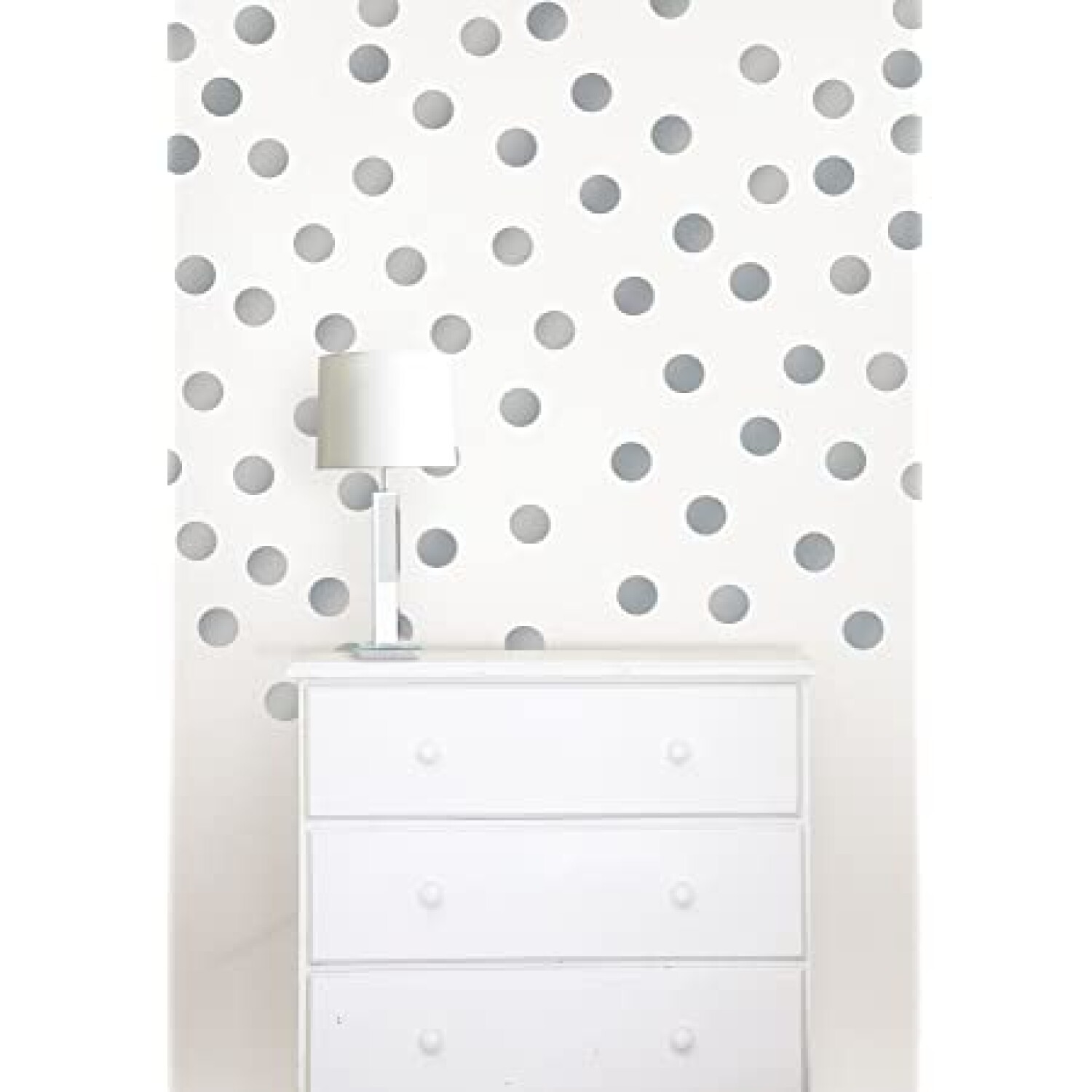 ¡Estos deslumbrantes puntos plateados son un espectáculo para la vista! Transforme el aspecto de su vivero con estos puntos de confeti fáciles de aplicar. ¡Simplemente pele y pegue para una actualización elegante que a su pequeño le encantará! Viene en cuatro hojas de 13 x 13 pulgadas y contiene un total de 64 calcomanías. Totalmente seguro tanto para su bebé como para las paredes.